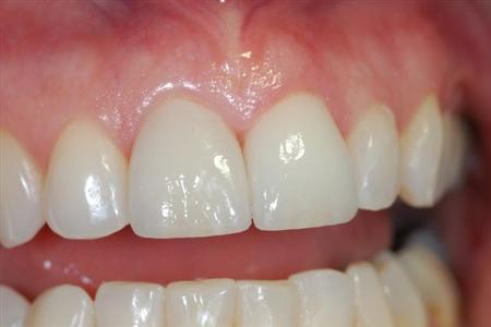 This 50-something woman was unhappy with the appearance of her four front teeth. Using laboratory custom-made veneers, she is now very pleased with how she looks. We custom match every case for the best possible look.